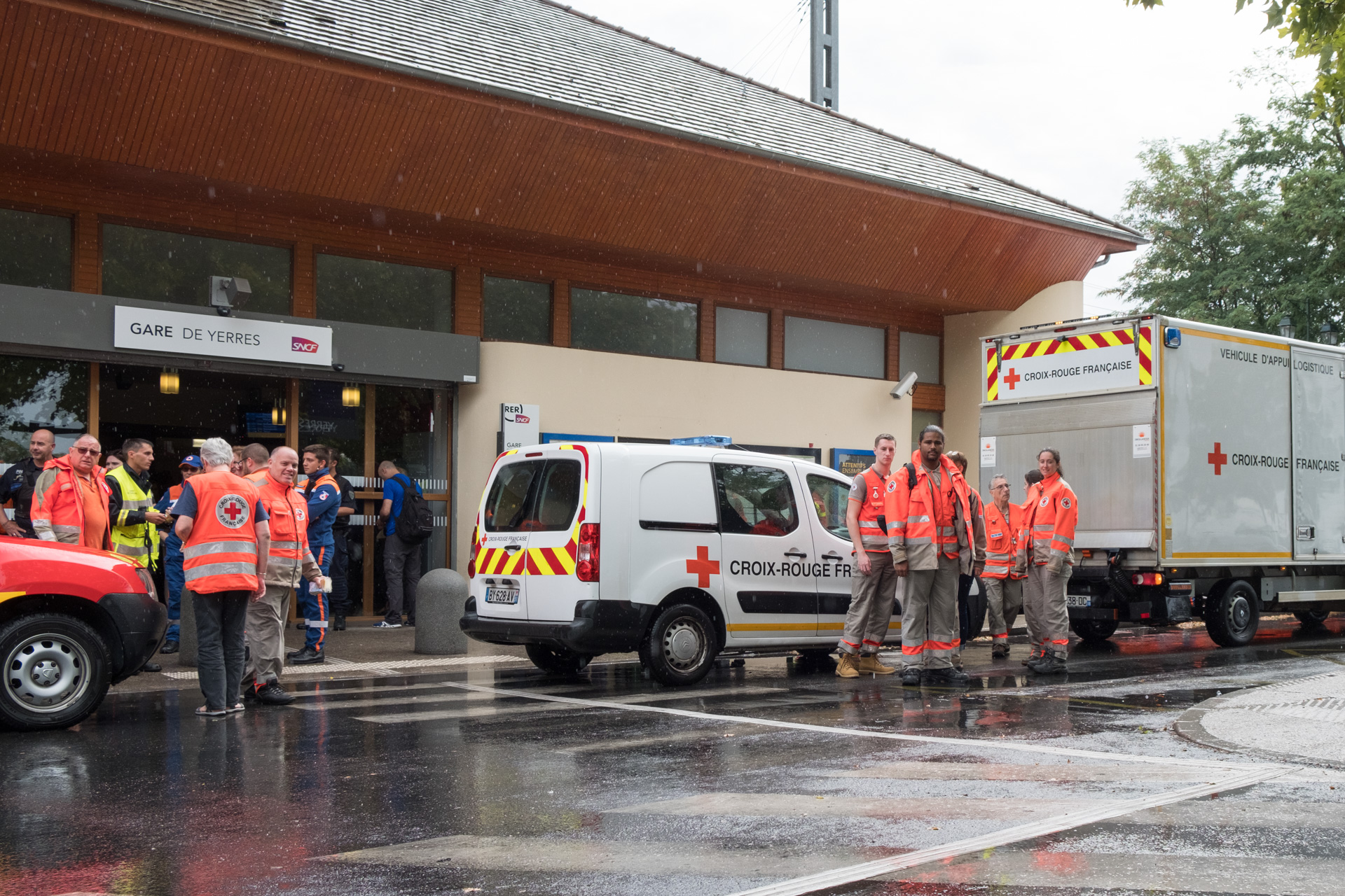 Sous le commandement du service départemental d’incendie et de secours (SDIS), la Croix-Rouge française a agi aux côtés de la SNCF, de la ville de Yerres et de sa police municipale.