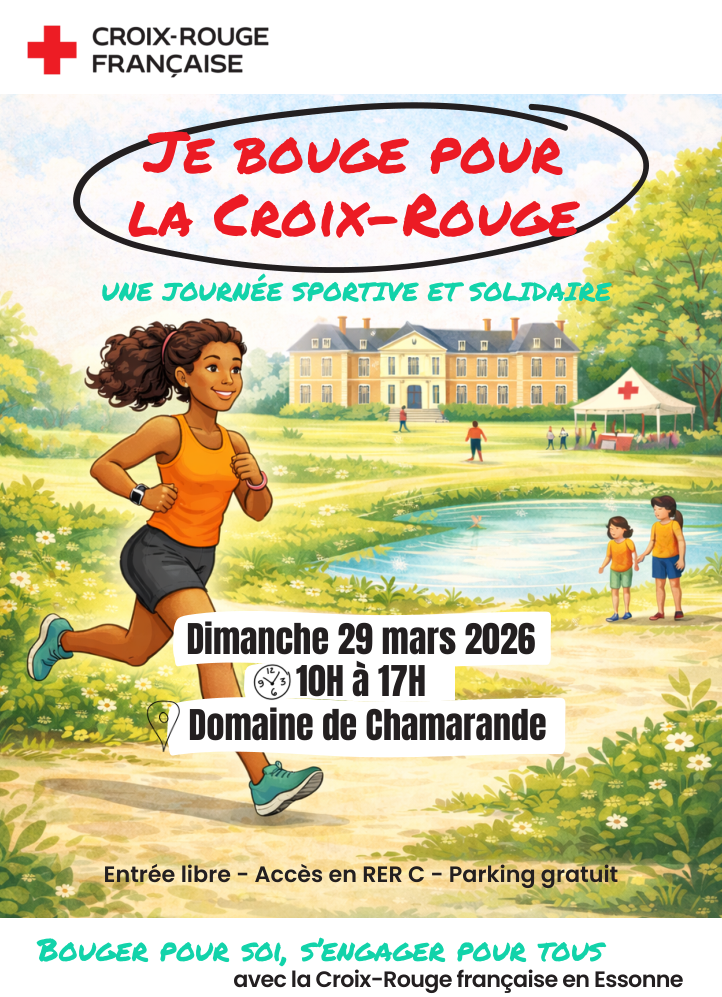 La Croix-Rouge française en Essonne organise le dimanche 29 mars 2026, de 10h à 17h, une journée exceptionnelle intitulée « Je bouge pour la Croix-Rouge » au Domaine départemental de Chamarande.