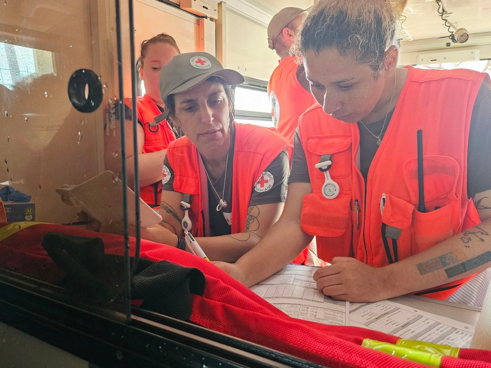 Noémie : “C’est une mission que je ne suis pas prête d’oublier. J’ai souhaité partir là-bas, car il me tenait à cœur d’apporter mon aide sur le terrain. Mon expérience sur place a été une immense leçon d’humilité. Voir à quel point la population est résiliente et à quel point la solidarité est présente même dans les moments les plus difficiles est impressionnant. J’ai également été profondément marquée par la force de notre association. Nous voir agir avec professionnalisme et efficacité dans un contexte exigeant m’a rappelé toute la puissance de ce symbole Croix Rouge. Sur place, nous avons mis en place la base vie, mené des actions de secours, de rétablissement des liens familiaux, organisé des distributions, réalisé des analyses pour la mise en place de points d’eau potable, ect… Au-delà des actions menées, ce qui restera gravé en moi, c’est la richesse des rencontres. Travailler main dans la main avec d’autres volontaires venus de toute la France, partager des moments forts, se soutenir et célébrer ensemble les fêtes de fin d’année a renforcé mon engagement plus que jamais. Cette mission m’a rappelé pourquoi j’ai choisi de m’engager avec la Croix-Rouge.”