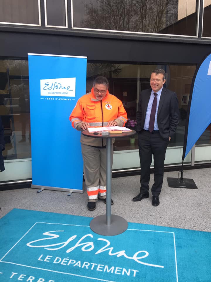 Ce jeudi 9 janvier, monsieur François Durovray, Président du Conseil Départemental de l‘Essonne, remettait à Alain Bouchard, vice-président de la délégation territoriale Croix-Rouge française, les clefs d’un véhicule Kangoo offert à la Croix-Rouge française par le Conseil Départemental.