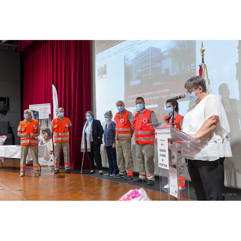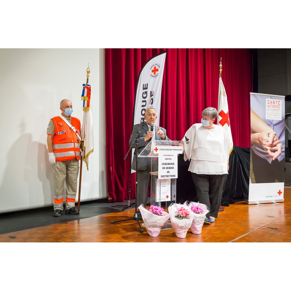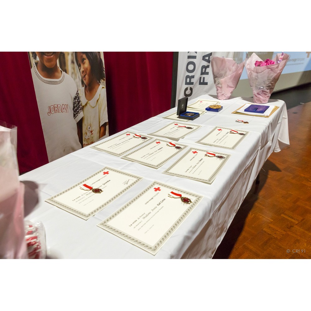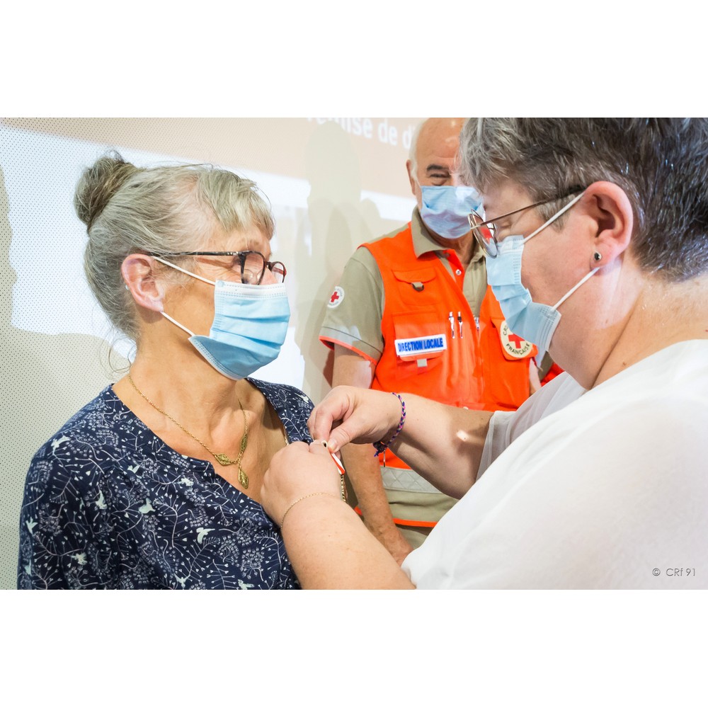 C’est donc avec satisfaction que j’appelle mesdames Simone Gourdon et Annie Del Corso. Toutes deux engagées dans les années 2007/2008, elles assurent avec dévouement leurs missions auprès des plus démunis au sein de l’unité de Draveil-Montgeron-Vigneux, l’une par sa présence et son écoute auprès des personnes accompagnées et l’autre ayant jusqu’à ce dernier mandat assuré la fonction de secrétaire. Pour votre engagement et votre disponibilité, nous avons l’honneur de vous remettre la croix de bronze de la Croix-Rouge française.