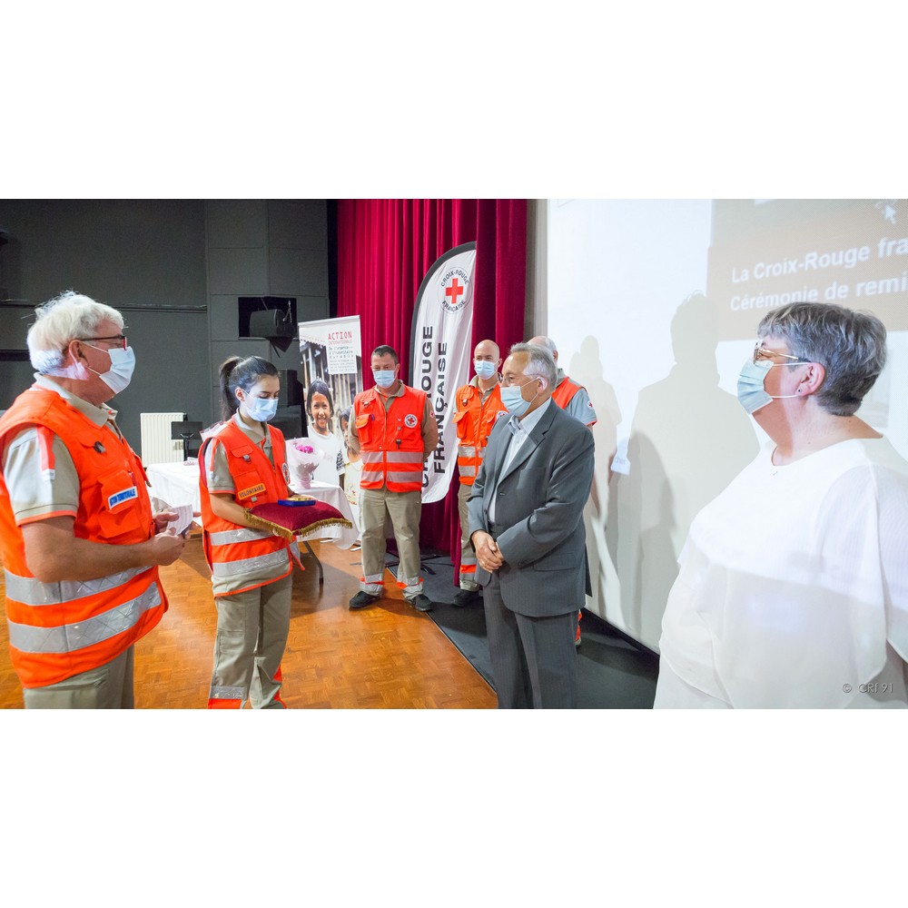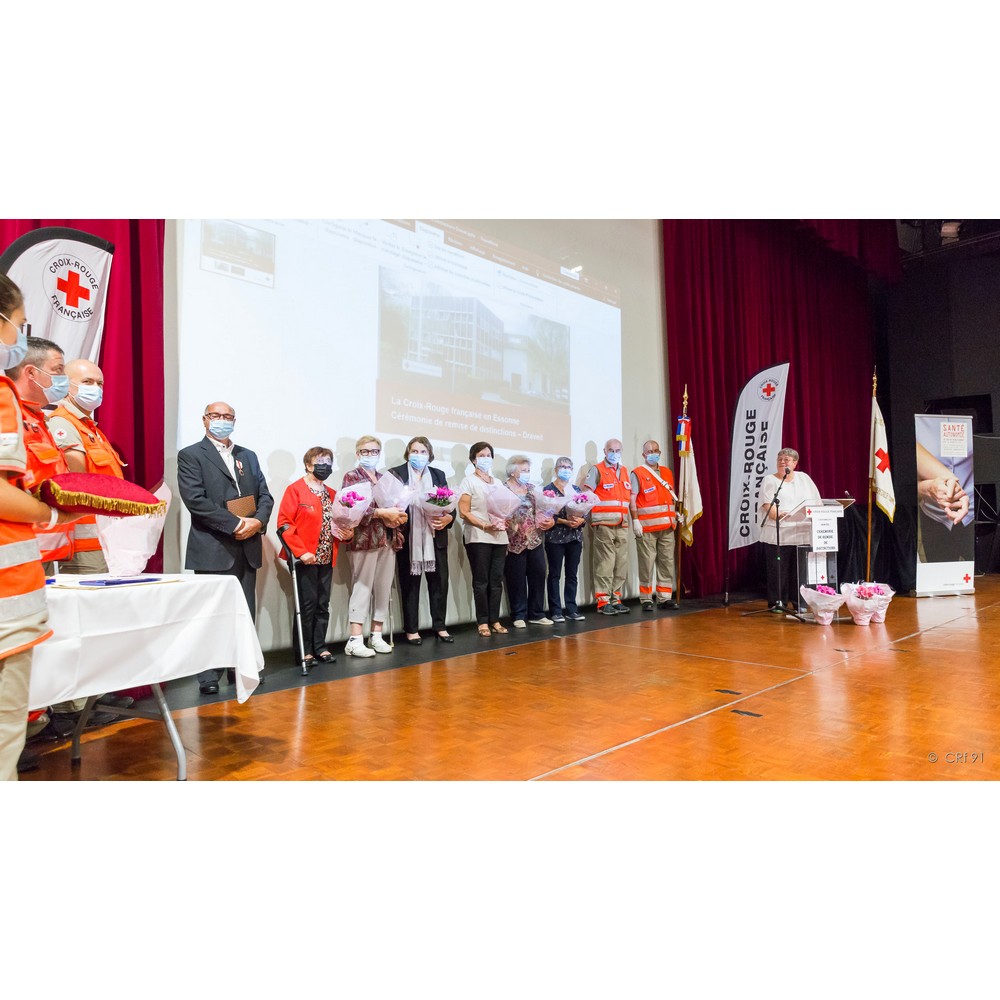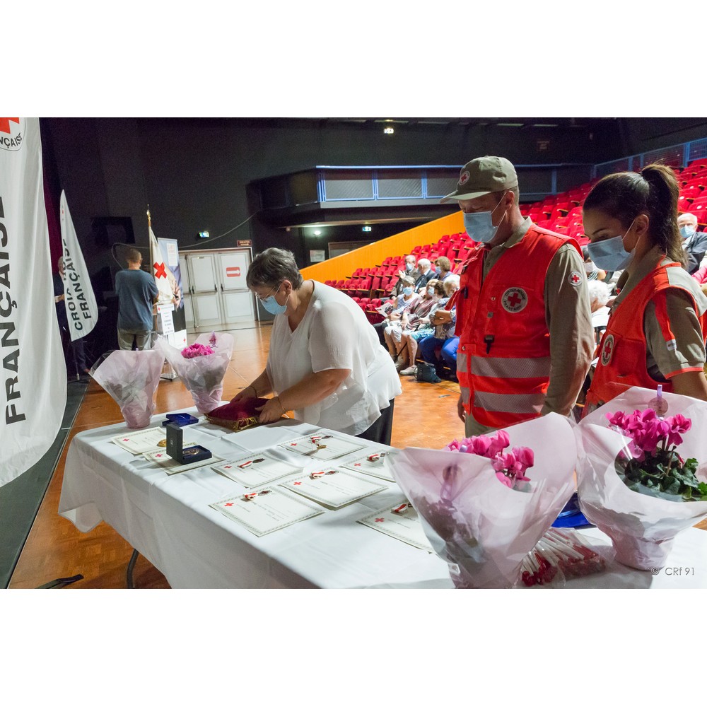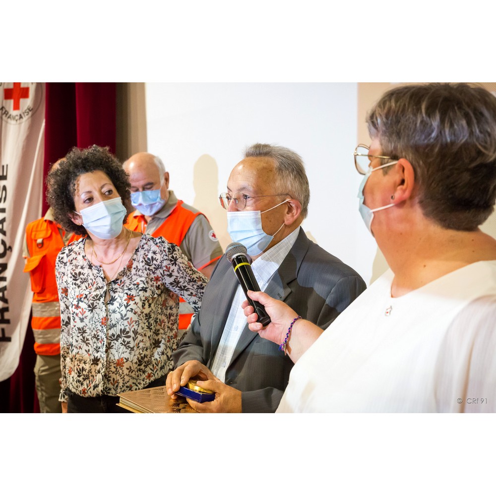 C’est donc avec satisfaction que j’appelle mesdames Simone Gourdon et Annie Del Corso. Toutes deux engagées dans les années 2007/2008, elles assurent avec dévouement leurs missions auprès des plus démunis au sein de l’unité de Draveil-Montgeron-Vigneux, l’une par sa présence et son écoute auprès des personnes accompagnées et l’autre ayant jusqu’à ce dernier mandat assuré la fonction de secrétaire. Pour votre engagement et votre disponibilité, nous avons l’honneur de vous remettre la croix de bronze de la Croix-Rouge française.