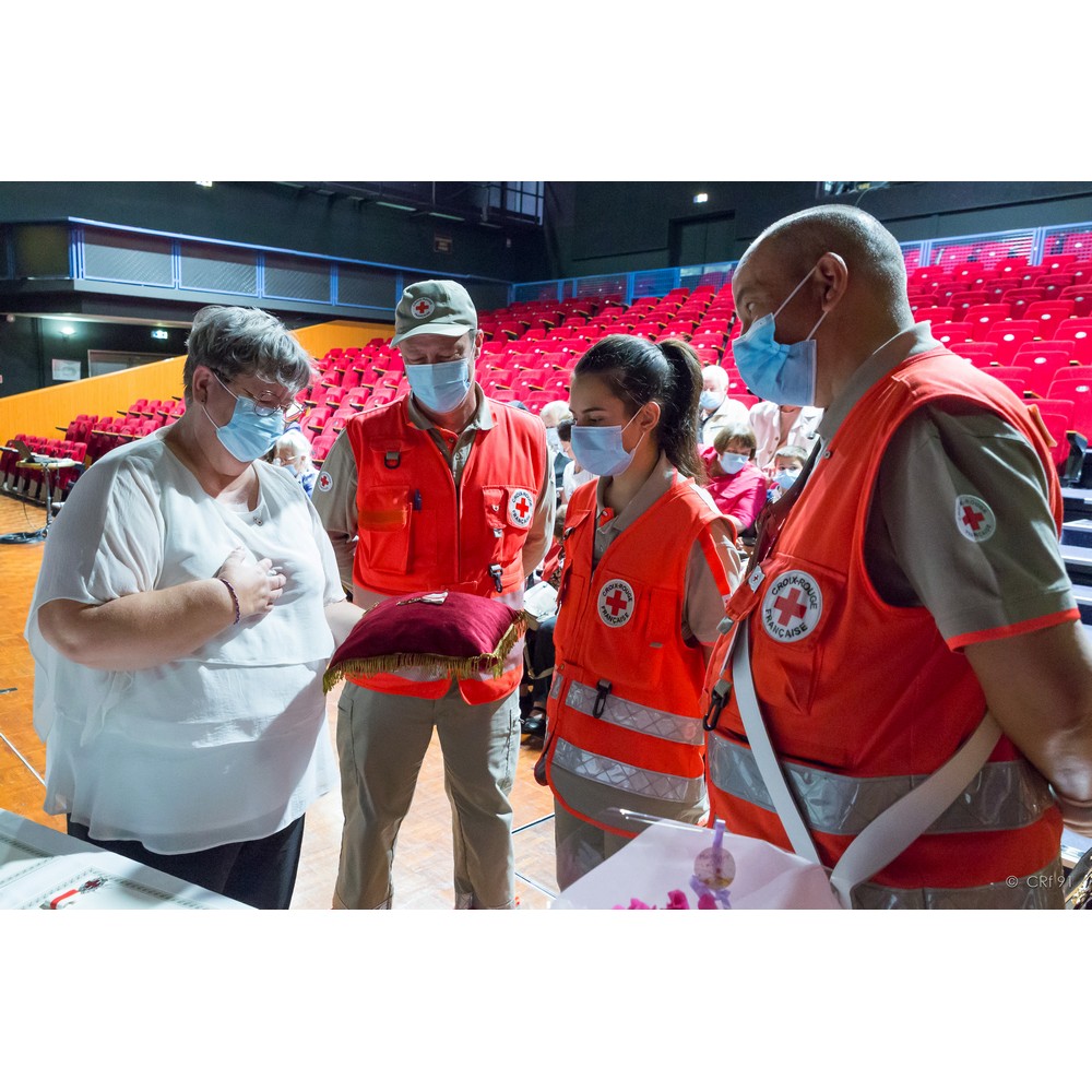 C’est au regard de cette vie bien remplie au service des autres. A soigner les maux du corps comme les maux de l’âme, à répondre à toutes les urgences, à vivre votre engagement avec autant de disponibilité et de sincérité, c’est pour tout cela que j’ai souhaité vous remettre la plus haute distinction de la Croix-Rouge française, la plaquette de Solférino.