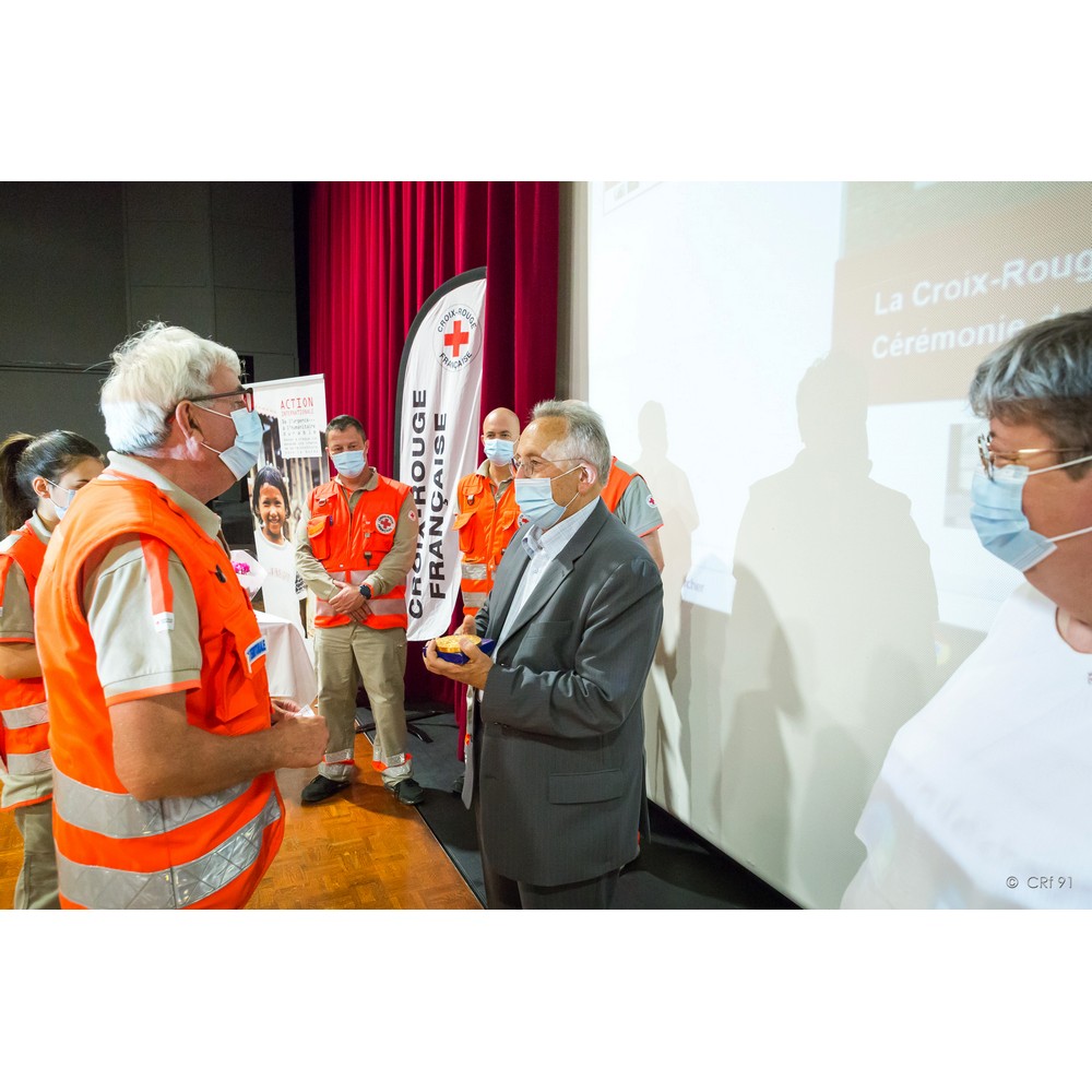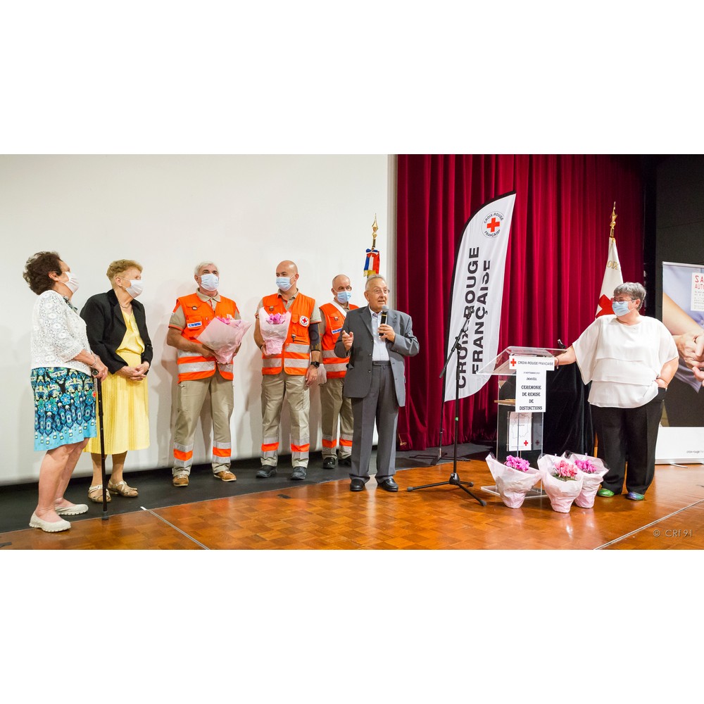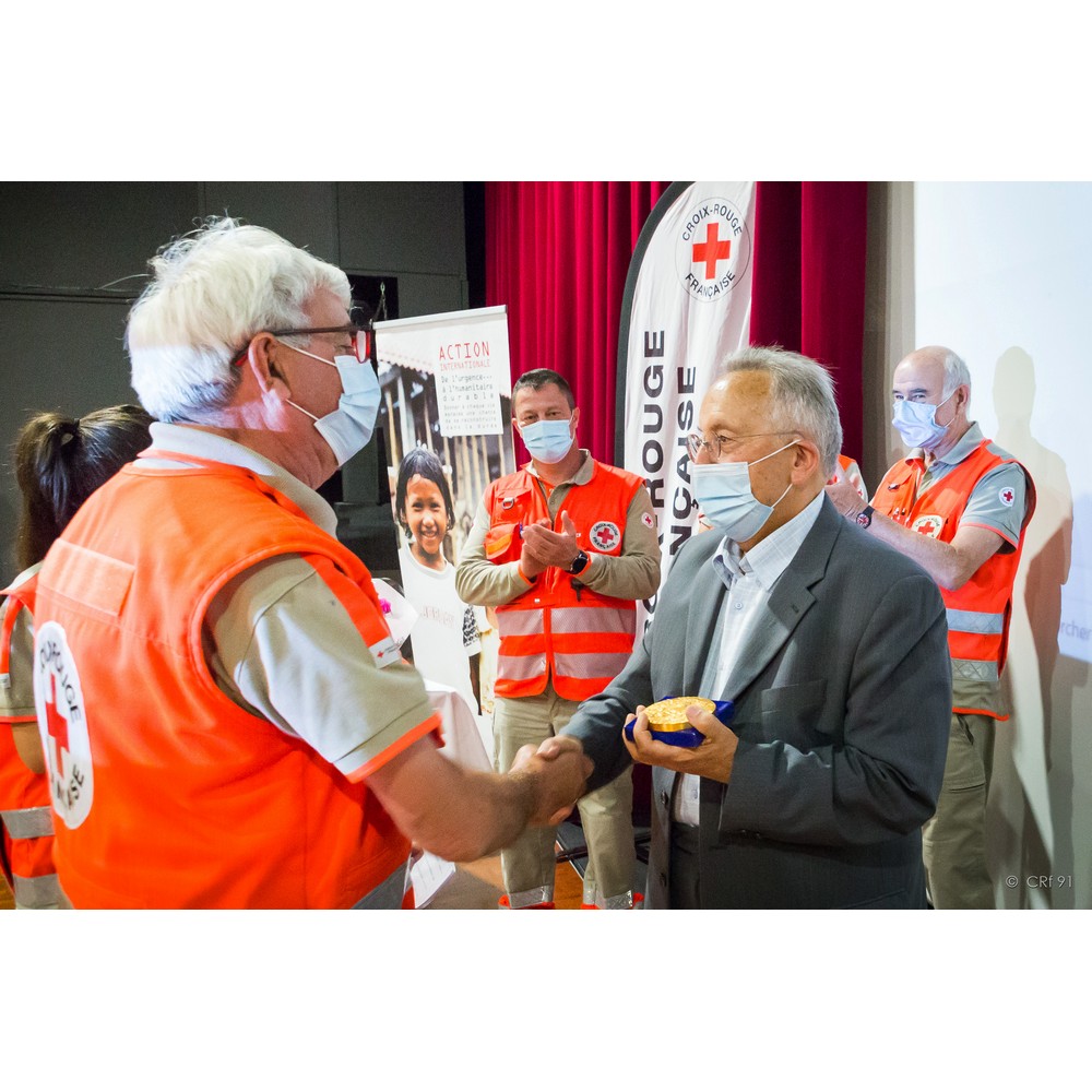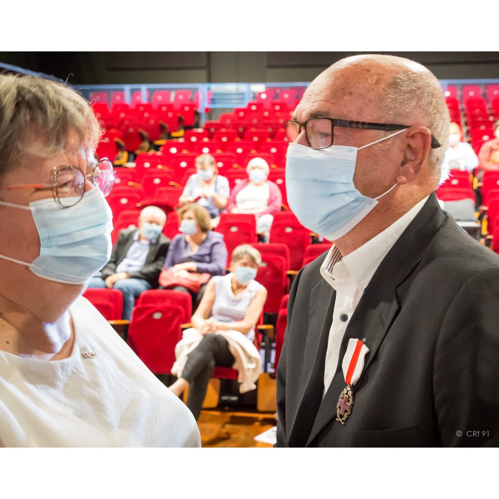 Il y a quelques mois, avant ce fameux virus qui nous perturbe, j’ai eu l’honneur de prononcer ce discours que je vous livre aujourd’hui : « Doyen du conseil territorial, il a su s’entourer de grandes personnalités au sein de son unité locale. N’est-ce pas là le rôle d’un bon président ? Quelques soient les difficultés ou les demandes nous savons pouvoir compter sur lui et son unité locale, comme le dépannage d’Arpajon en livrant 10 cartons de vêtements enfants, le principe d’unité de la Croix-Rouge traduit en actes ! c’est pour son engagement et sa responsabilité de président que nous récompensons René Gosse en lui remettant la Croix d’Argent de la Croix-Rouge française ». Je suis heureuse de renouveler ce geste aujourd’hui devant vous tous.