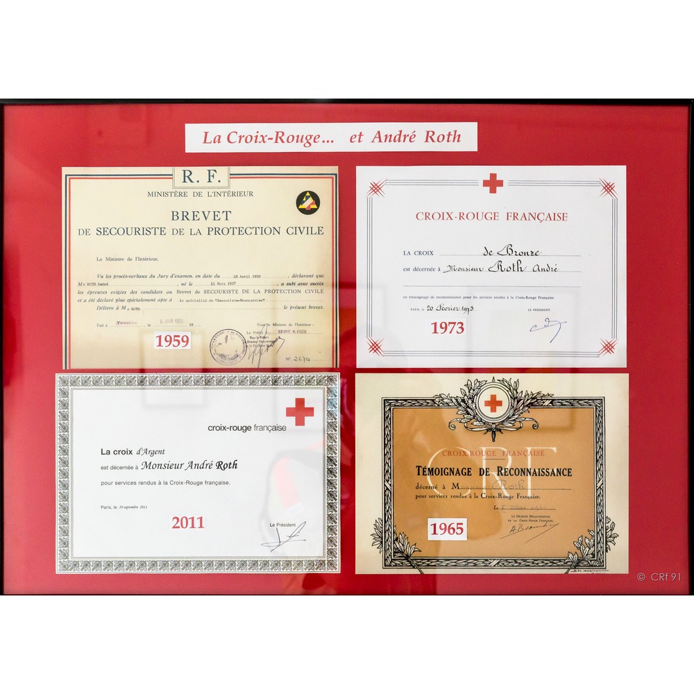 Et puis la vie personnelle, mariage, famille, maison, travail, André prend un peu de recul. Ici il me semble essentiel de parler de nos familles, conjoints, enfants. Et de dire combien nous leur devons, combien il serait nécessaire de leur remettre à eux aussi une distinction. Et, puisqu’André a beaucoup insisté pour que mon mari m’accompagne aujourd’hui, permettez-moi ici un message personnel. Secrétaire, lecteur, correcteur, chauffeur, soutien moral, c’est aussi grâce à lui que je suis là, merci de sa patience, de ses conseils et de sa présence à mes côtés. Merci à tous nos partenaires de vie qui nous laissent vivre notre passion au service de la Croix-Rouge. Merci Benoit !